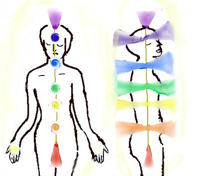 principais chakras do corpo etérico estão alinhados ao longo de um eixo